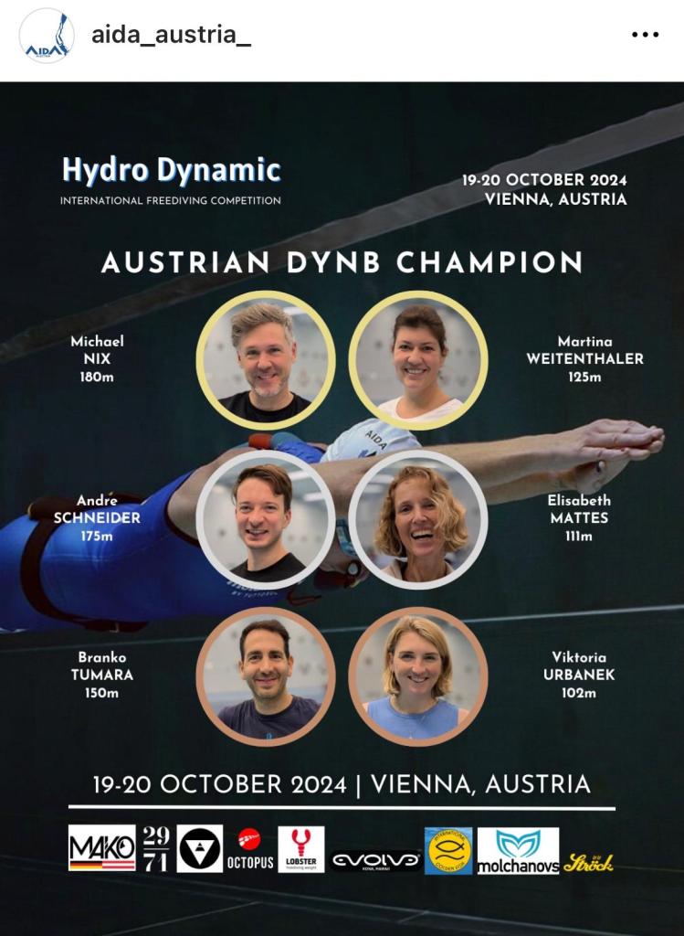 Martina Weitenthaler trat vor wenigen Tagen beim internationalen Freitauchwettbewerb der AIDA Austria in der Südstadt in Maria Enzersdorf an. Für sie war es die erste Teilnahme an einem Bewerb, die gleich mit zwei ersten Stockerplätzen endete.